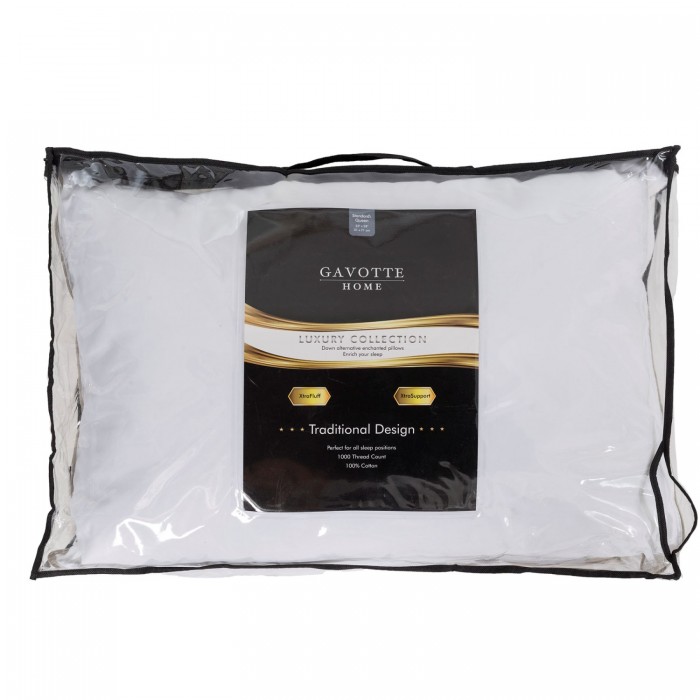 Enrich your sleep with our Gavotte Home Luxury Collection Down Alternative Enchanted Pillows. This extraordinary enchanted design, provides the utmost in adjustable cushioning and support. An inner pillow filled with our unique Xtrasupport, ensures resilience and support. While a fluffy outer pillow, of our softest feathery Xtrafluff, cradles your head and neck in blissful comfort. The ultimate in quality, comfort and durability, our 1000 thread-count enchanted pillow offers a breathable and luxurious sleep experience.- Pillow-in-a-pillow design - Extra support inner pillow, Extra fluff outer pillow