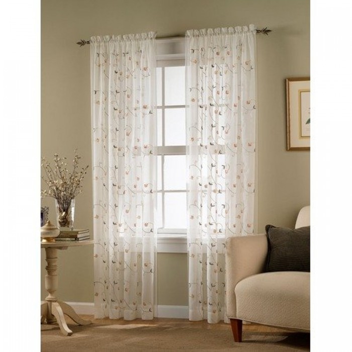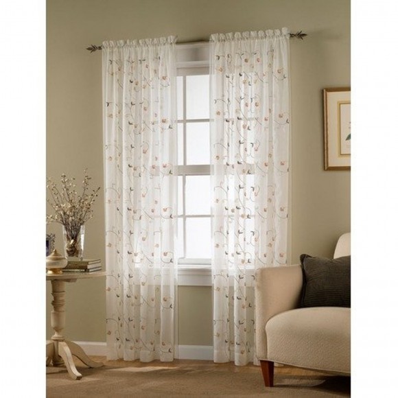 - Embroidered florals on sheer voile panel