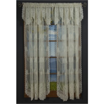 Brighten up any room with this elegant Vanessa Lace Swag Valance. Fine gauge jacquard polyester lace has a classic floral medallion motif. Use this Calais Lace Swag Valance on its own or with coordinating Calais Lace Curtain Panels and Valances. 100% polyester. Machine washable.- Floral design lace valance